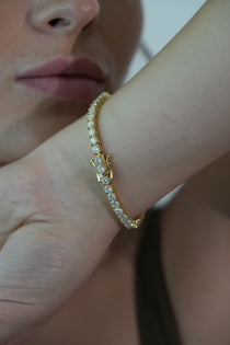 5MM VVS Lab Grown Diamond Tennis Bracelet – Authority Collection: This 5mm tennis bracelet speaks leadership, featuring IGI-certified round lab-grown diamonds in prong settings and 14K gold plating on S925 silver. It shows clear command and lively fire, made for work leads or joyful raises her strength in elegant, reliable form.